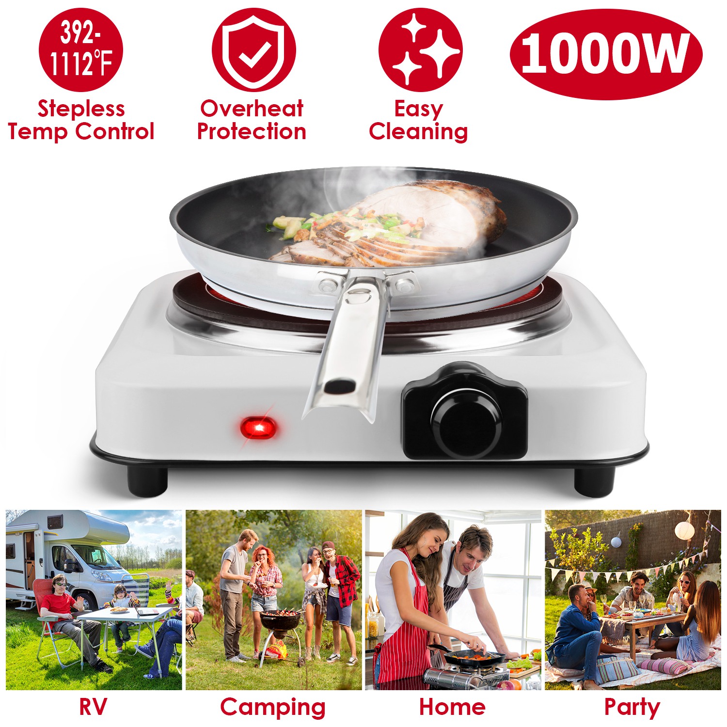Home > 1000W Electric Infrared Single Burner Portable Heating Hot Plate Stove Countertop RV Hotplate with 7.5” Glass Cooktop Stepless Temperature Adjustments
