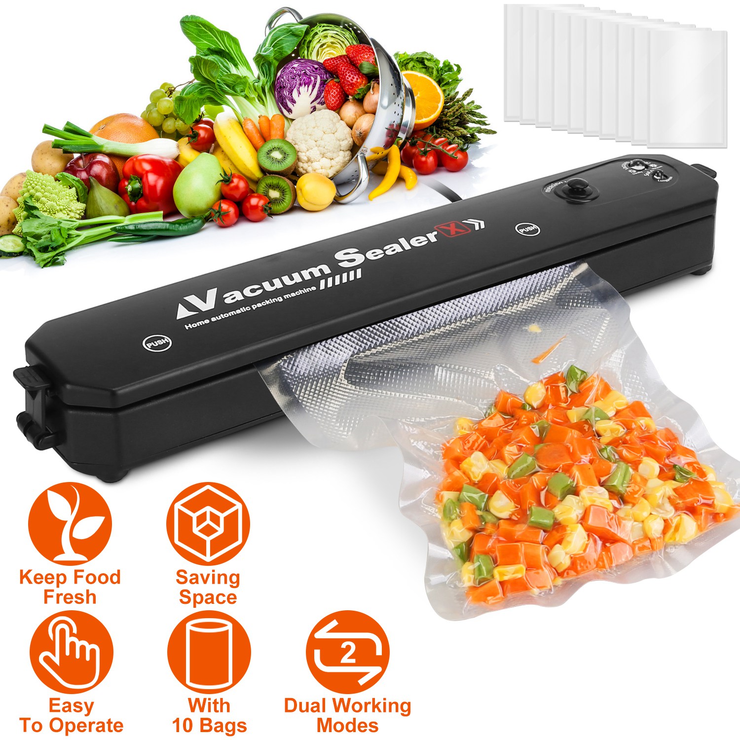Home > Vacuum Sealer Machine Automatic Food Sealing Machine Food Preservation Storage Saver Dry Wet Soft Hard Food Air Sealing System with 10 Seal Bags